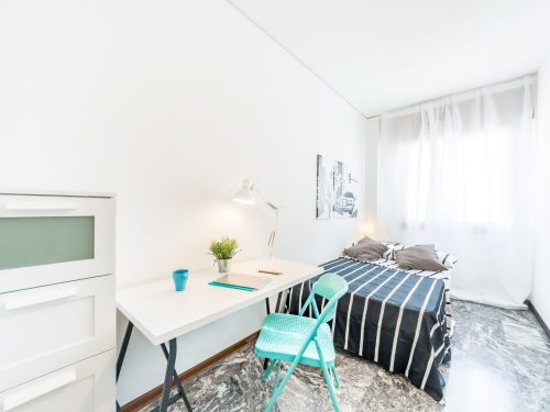 L’appartamento è luminosissimo ed è composto da 4 Camere Singole, 2 bagni, uno con vasca e uno con doccia, un’ampia Cucina con Terrazzo, un grande Ingresso con Disimpegno e un ripostiglio.