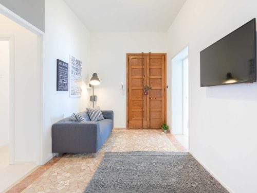 The apartment is on the 3rd floor and it’s made up of: Living Relax Entry Hall with TV, a big Kitchen with Terrace, 6 Single Rooms, 2 Bathrooms.