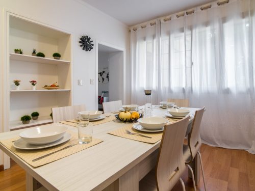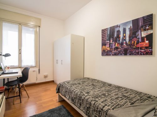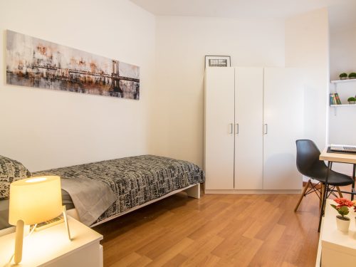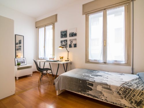 The apartment has just been renovated and consists of 6 comfortable Single Rooms, 2 Bathrooms with Shower and a very large fully equipped Kitchen. The furnishings are in a Modern Minimal style and every room is studied in detail.