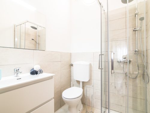The apartment consists of 6 spacious rooms including 2 with private terrace, 2 common bathrooms with shower, and a functional common kitchen. The area is equipped with every service: below the house you have the Despar supermarket, a pizzeria and several bars, the post office and a bank.