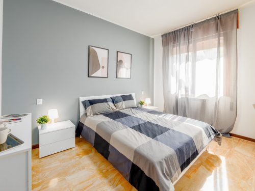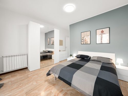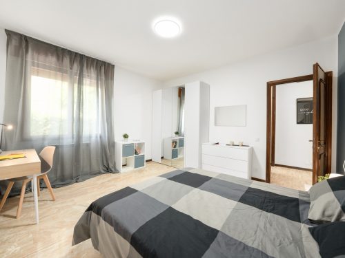 Bright apartment located on the mezzanine floor, consisting of six rooms all on one level. The layout includes three suites with double beds, one of which features a private terrace, one room with a three-quarter bed, and two rooms with single beds — ideal for students or young professionals.