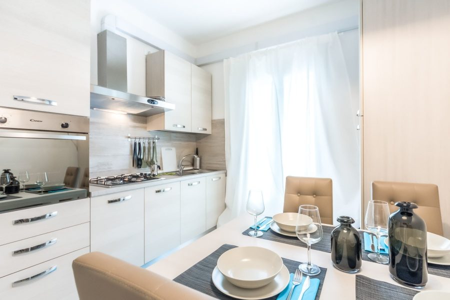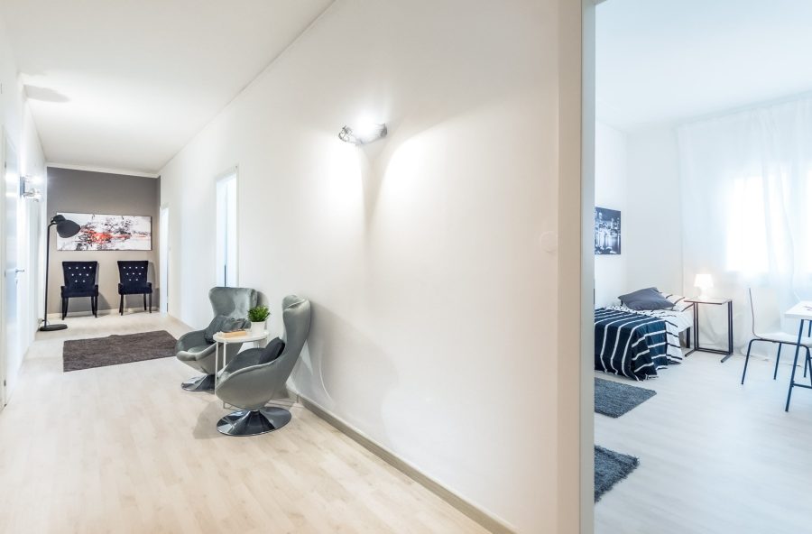 The apartment is made up of: 5 Single Bedrooms, 2 Bathrooms with shower/ bathtub, and a Kitchen with a Terrace.