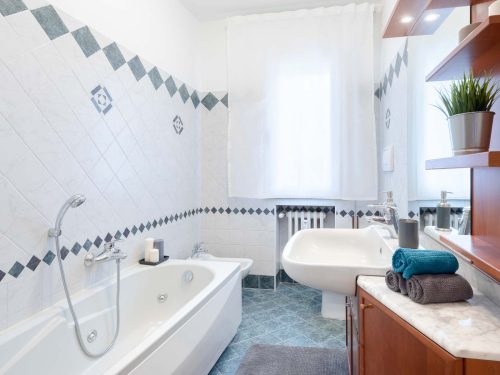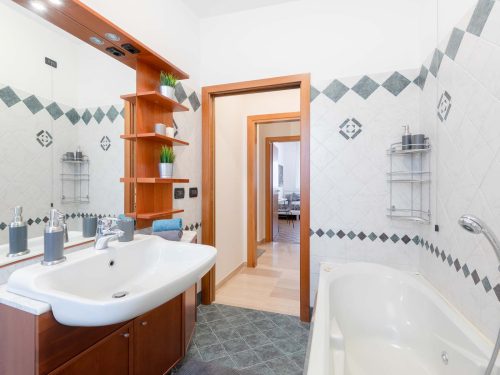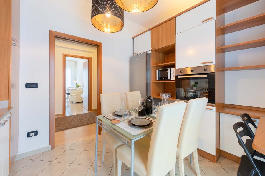 The apartment is brand-new renovated with Modern Style Furniture and it is made up of: 5 Single Rooms, 2 Big Bathrooms with bathtub/shower, a wide Kitchen with Terrace.