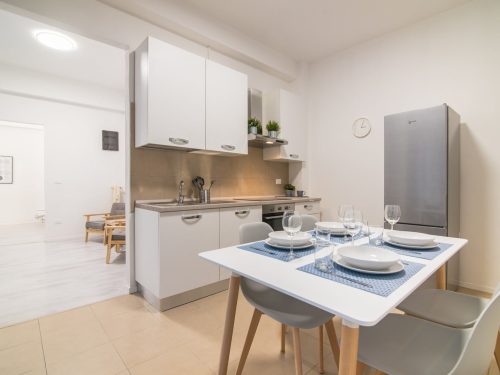 The apartment consists of 5 Single Rooms, Fully Equipped Kitchen with large Terrace, 2 Bathrooms with shower and Living Relax Area.
