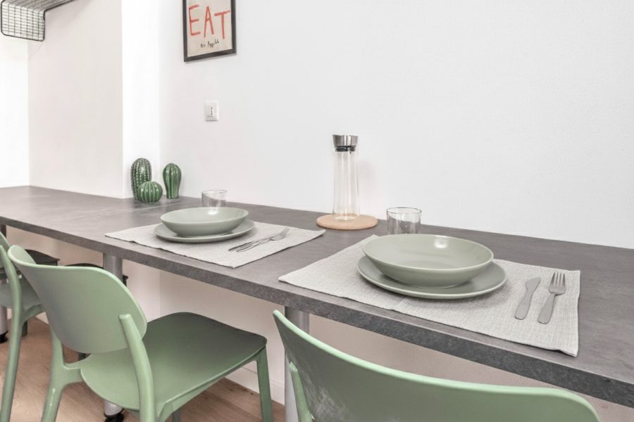 The apartment, located at Via Selvatico 30, is spread over two levels: on the ground floor you’ll find rooms A, B, C, D, and E, while on the basement level there are double rooms F, G, and H.