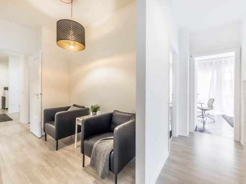 The apartment, just renovated, is settled in Mestre, in Via Milano a side street of Corso del Popolo.