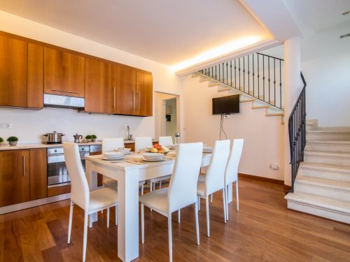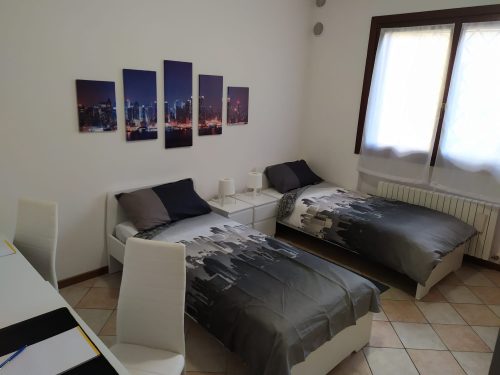 The newly renovated apartment has very large spaces and is located in an independent house divided onto two floors: on the ground floor there is a huge fully-equipped kitchen, 1 shared bathroom and 3 single rooms (one of which has a PRIVATE BATHROOM). On the 1st floor, there are 4 rooms (one of which has a WITH PRIVATE BATHROOM) and 1 shared bathroom. The apartment also has large terraces and an internal courtyard, very convenient for spending some time outdoors.